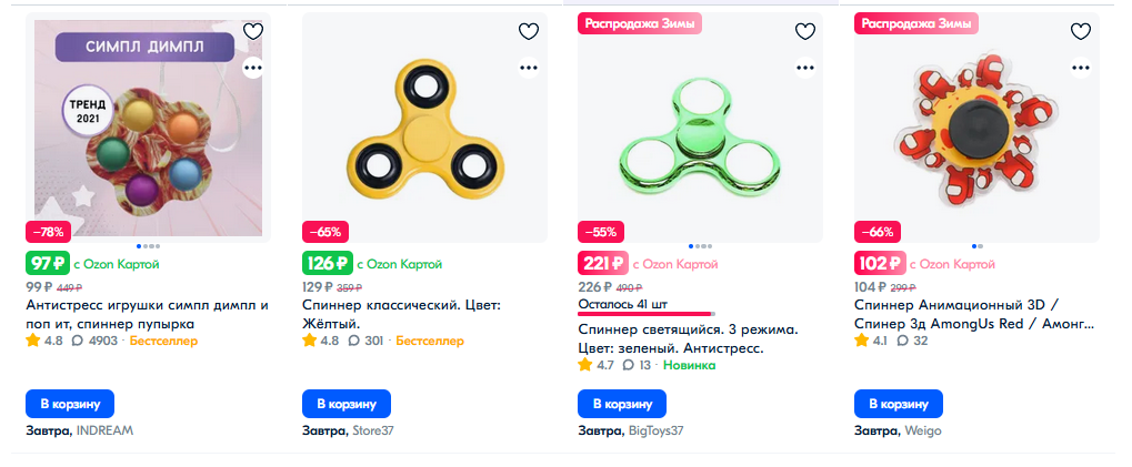 Последняя категория нашего списка. Ирония в том, что никто не знает, какие товары будут продаваться на хайпе, когда это случится и сколько продлится. Мы можем привести только общеизвестные примеры прошлых лет. Наверное, все помнят спиннеры, игрушки-антистресс, говорящих хомяков и Кота Батона. Когда-то об этих штуках мечтал каждый ребенок и половина взрослых, а теперь они и даром никому не нужны.