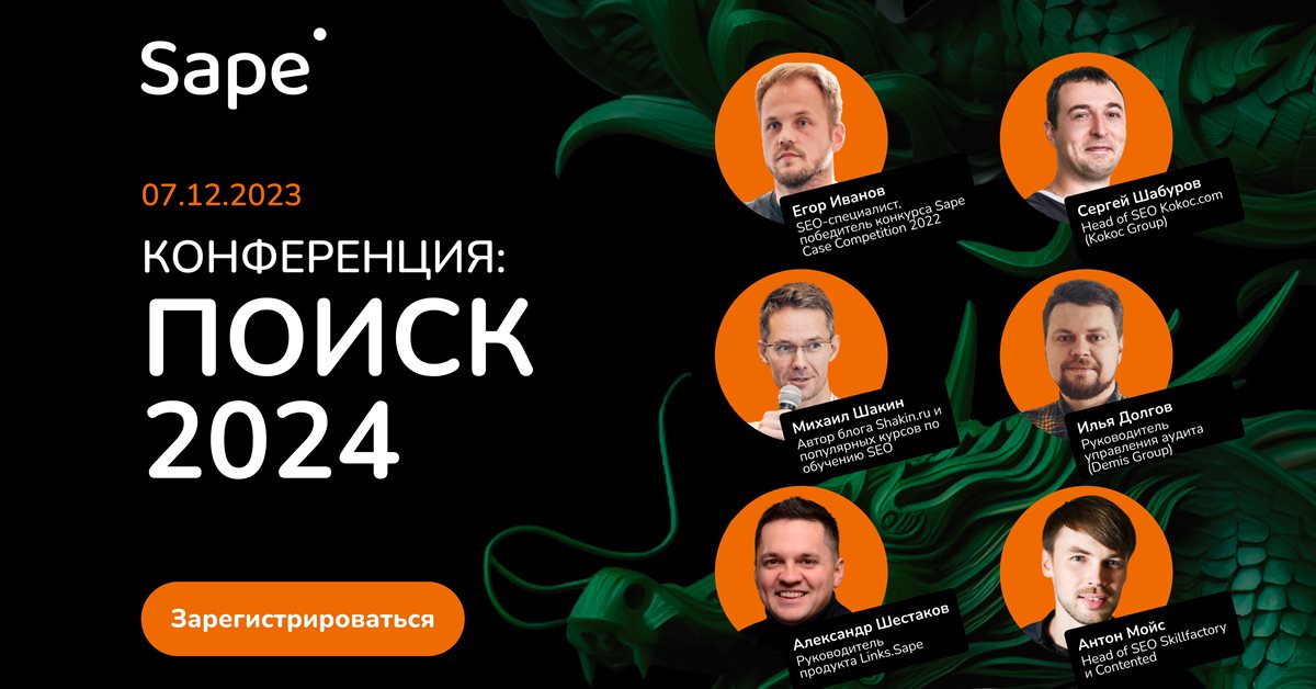 7 декабря, в четверг с 13:00 до 16:30, пройдет онлайн-конференция «ПОИСК 2024». На ней представители ведущих российских компаний в области SEO и независимые эксперты рынка обсудят, каким будет поисковое продвижение в 2024 году.