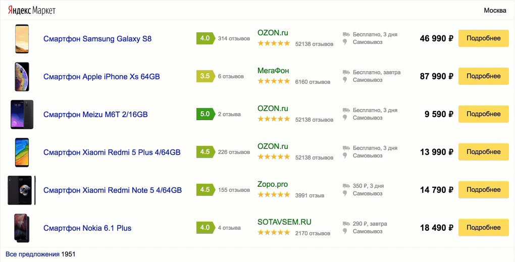 Виджеты геозависимые, поэтому посетителям из других регионов автоматически будут показаны предложения магазинов с доставкой в их регион. При этом пользователь прямо в виджете может уточнить регион, если он определился неправильно, или пользователь в отпуске за границей ищет себе новый гаджет с доставкой в свой город. Как уже упоминалось, Маркет работает с магазинами России, Белоруссии и Казахстана.