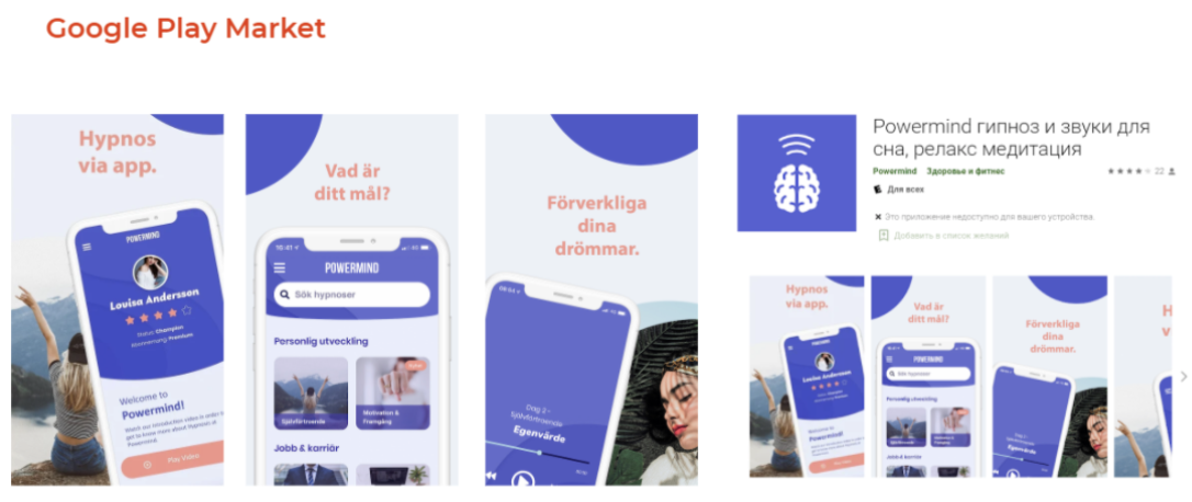 Далее стоит обратить внимание на скриншоты. Они должны быть в едином стиле с иконкой и рассказывать о функционале и конкурентных преимуществах приложения. Желательно иметь возможность прочитать текст на скриншотах без необходимости увеличивать картинку в размере.