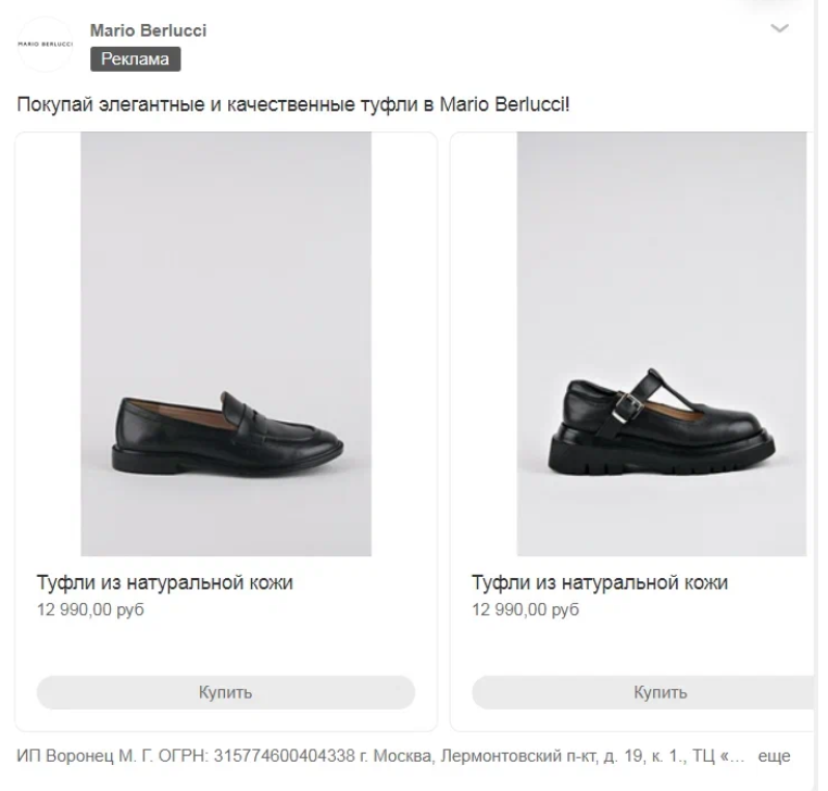 1) У товаров на сайте было техническое название, которое подтягивалось в рекламное объявление. Так, название «8457123_кросовки_ беж_турция» совсем не привлекало клиентов. Поэтому мы вместе с клиентом заменили его на «Кроссовки из натуральной кожи Mario Berlucci бежевые». Так же поступили и с другими названиями.