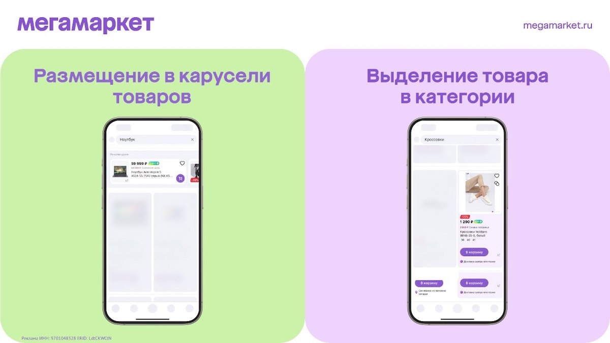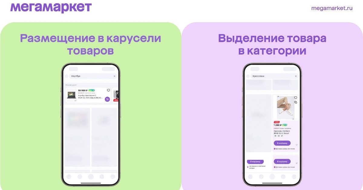 Мегамаркет добавил «Размещение в карусели товаров» и «Выделение товара в категории» в приложение (раньше эти возможности былии только на сайте). По расчетам маркетплейса, это позволит повысить эффективность рекламы до 4 раз. По статистике 75% пользователей площадки делают покупки через приложение.