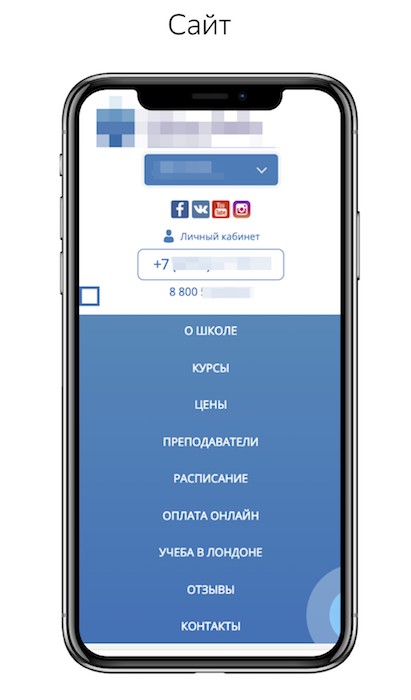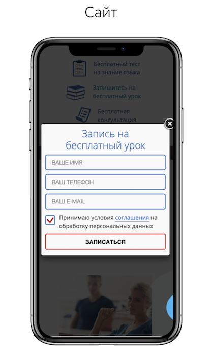 Как видим, на исходной версии сайта пользователю приходилось искать кнопку «заказать урок». После клика на нее открывалась форма, где пользователь оставлял информацию о себе и после этого с ним связывались менеджеры.