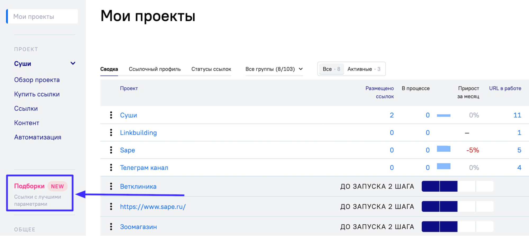 Умный и эффективный линкбилдинг доступен благодаря следующим функциям в интерфейсе платформы: