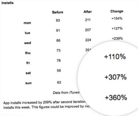 Однако, можно оценить суммарный эффект от ASO в консолях магазинов приложений — App Analytics (iTunes Connect) и User Acquisition (Google Play Console) — сравнив показатели «до» и «после»: