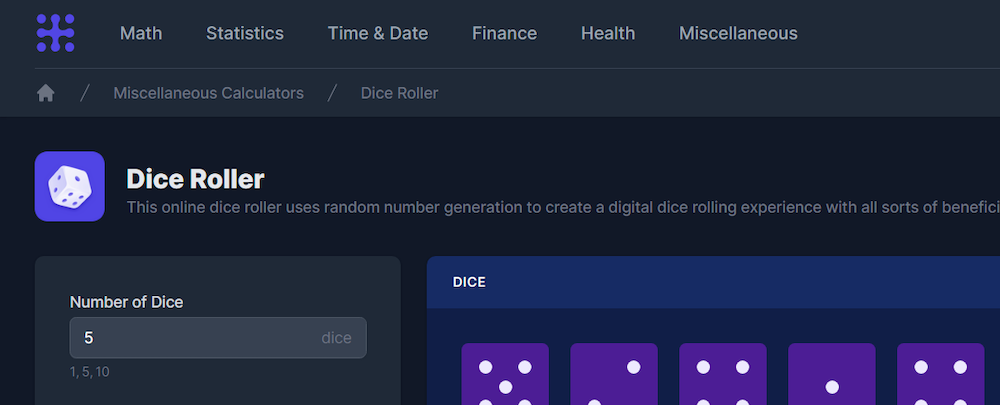 Ресурс представляет собой удобную платформу для разнообразных вычислений. На нем размещены 126 калькуляторов, позволяющих точно рассчитывать количество дней до определенной даты, различные кредиты, потребляемые калории и многое другое. Также среди сервисов — генератор случайных чисел, который можно использовать для лотерей или розыгрышей.