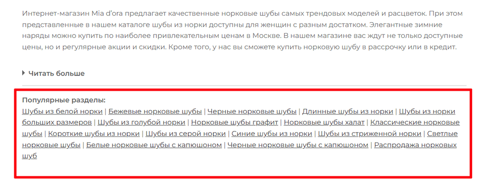 • Внутренний — в виде перелинковки на другие разделы сайта.