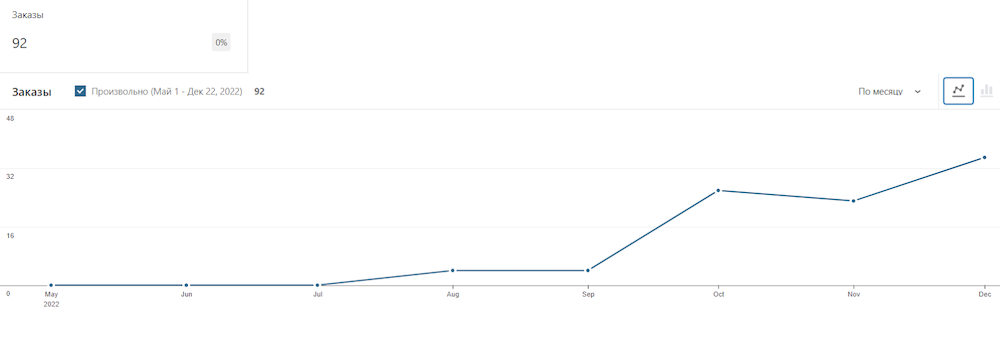 1. Количество заказов выросло в 30 раз: с 0 до 30 в месяц. Для премиум-ниши это более, чем хорошо: каждый заказ приносит владельцу от нескольких десятков до нескольких миллионов рублей прибыли.